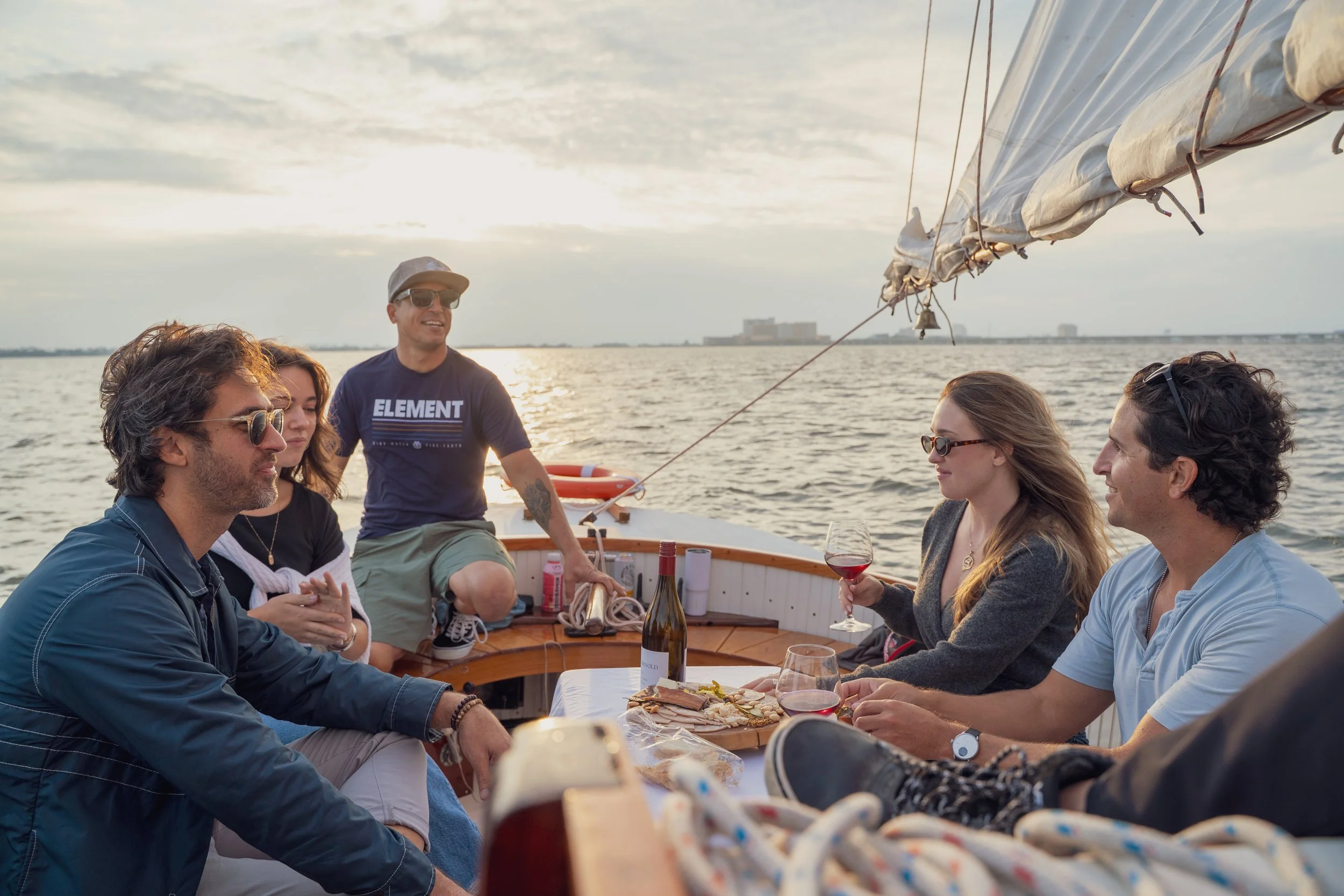Sail into golden hour aboard The Redwing, a private 2.5-hour sunset charter for up to 6 guests. Enjoy a welcoming glass of wine at the dock, charcuterie and chilled water on deck, and a relaxed coastal cruise hosted by our licensed captain and first mate. Watch the sun set over the Mississippi Gulf as we return to Ocean Springs Harbor.