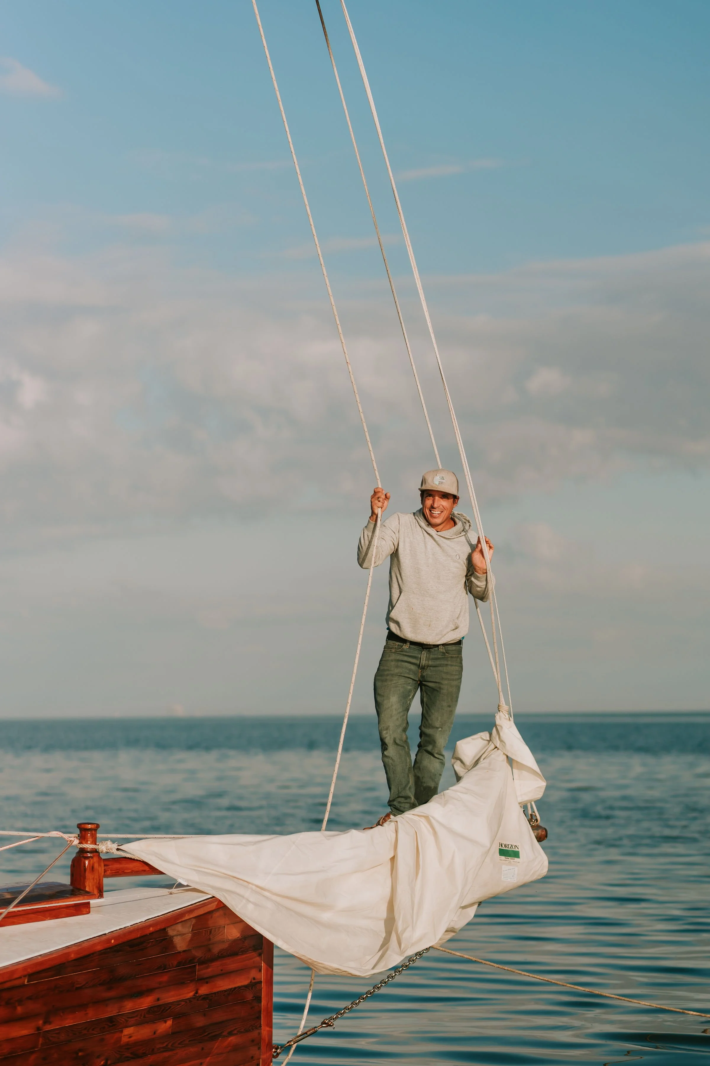 Captain Shane Sekul is an Ocean Springs native, artist, and licensed mariner with years of charter experience in the Florida Keys and Destin. With a U.S. Coast Guard 100 Ton Captain’s License and a passion for both craftsmanship and sailing, Shane brings skill, creativity, and local knowledge to every trip aboard The Redwing.