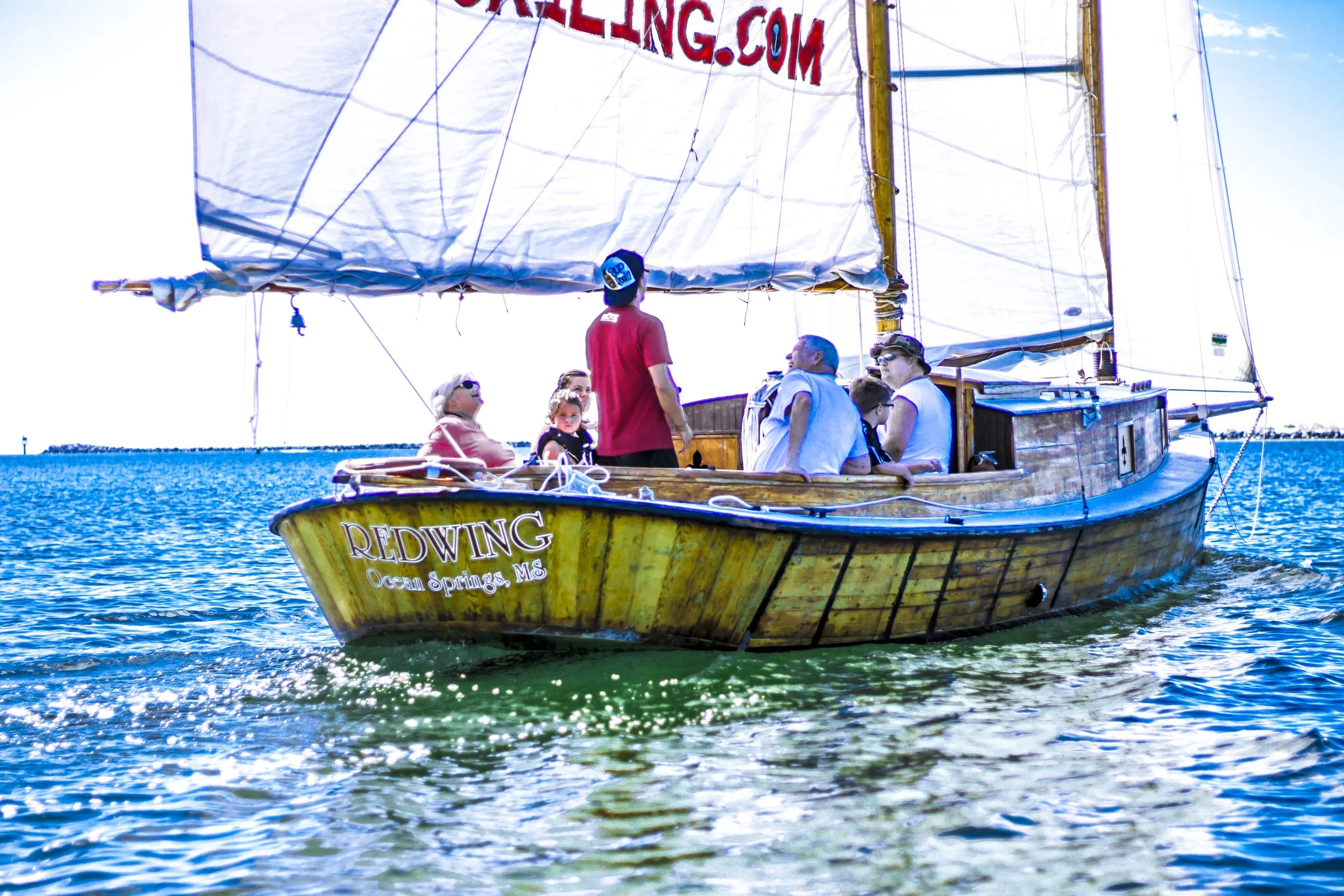 The Redwing holds up to 6 guests. A glass of wine is served to each guest on all of our cruises, as is water and a charcuterie board. Point of departure is Ocean Springs Harbor Slip 46: https://maps.app.goo.gl/h7uJjDfGz6ZSfCp39?g_st=ic